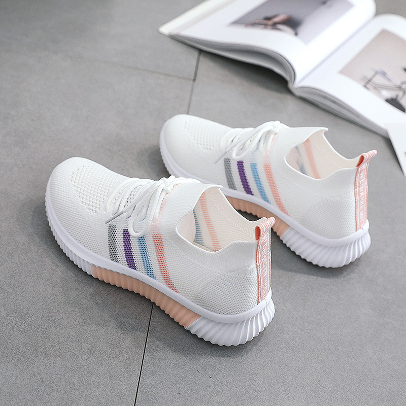 Summer colorful striped low-top sneakers, casual and versatile white shoes, fly-woven mesh mesh shoes, flat-soled students