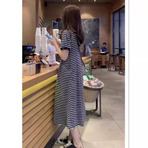 Summer new short-sleeved striped dress women’s oversize T-shirt slimming versatile long skirt