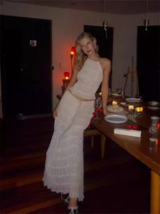 Fashionable and sexy backless halter neck strap pleated chiffon lace vest long skirt suit Fabric name: cotton polyester Pattern: solid […]